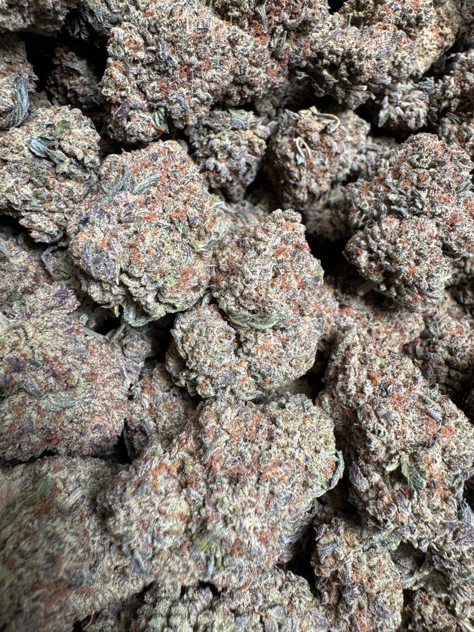 Each bud of Platinum Bubba Strain is compact, resin-coated, and visually stunning. The dense green nugs feature purple hues intertwined with bright orange pistils and an unmistakable silver-platinum layer of trichomes — the signature of its quality.