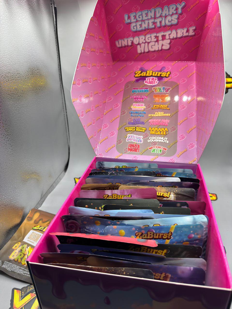 The Zaburst x Terp Burst 3.5G Pack features a rotating selection of premium hybrid and exotic strains, each chosen for its distinct terpene expression and cannabinoid profile. Whether it’s a fruit-forward hybrid, a gas-heavy indica, or an energizing sativa, each strain promises one thing: exceptional quality.